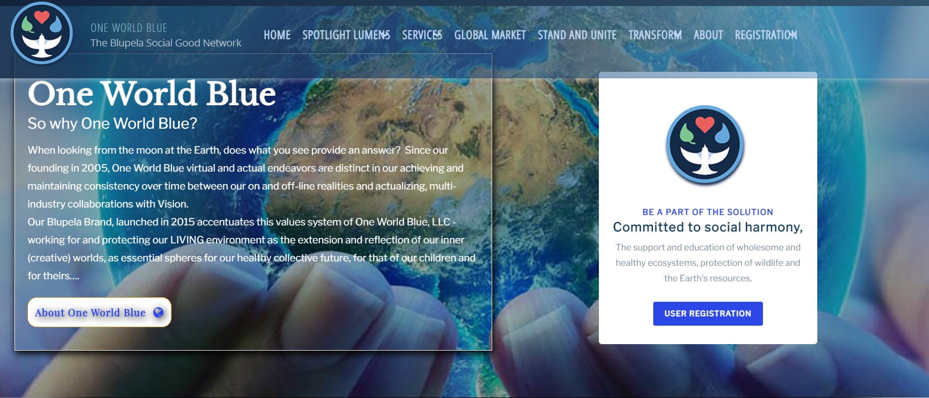 So why the name Blupela? Actually it is just a cool name we came up with. But it also means Blue Bird of Paradise in Papua New Guinea. It is a bird that is endangered and protected and it serves thus to show you our values here at One World Blue, LLC. Blupela is the brand name and One World Blue is the corporation. We work for good things in and around the world. Protecting the environment is one thing we believe in. So why One World Blue? Well what do you see when looking from the moon at the Earth? Does that answer your question? Originally founded in 2005, One World Blue, LLC, has been building something online that is different from all the rest because we care and we are bringing goodness to the Earth with the quality projects and profiles you will see on our network. Blupela.com is the Social Network for Social Change of The One World Blue Good Network. We are a revolutionary social media and crowdfunding platform that promotes initiatives and profiles for changing and healing the world one good deed at a time. We also serve as a global, moderated forum to promote the sharing of ideas related to peace in our world, the betterment of our planet and its ecosystems, and the celebration and appreciation of cultural diversity. One World Blue will become the go to destination for anyone wanting to do good online and in the marketplace. Blupela.com is a site where users can put their Good Initiatives and Profiles online and accept funding, time, and goods as well as allow people the ability to communicate and chat about the initiatives, projects and profiles. One World Blue is committed to social harmony, the support and education of wholesome and healthy ecosystems, protection of wildlife and the Earth's resources, and the appreciation and celebration of diversity. One World Blue believes in equality for all human beings and we may be branded The One World Blue Good Network, the Social Network for Social Change.