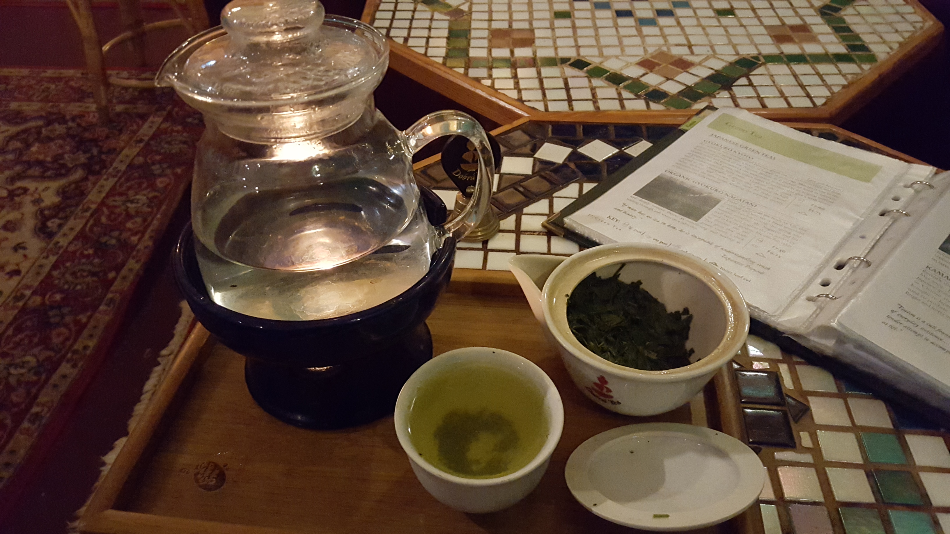 Original Thoughts: This is one of the finest Japanese green teas I've had the pleasure of sipping. I usually go for the "organic" variety of Gyokuro Kyoto, but I wanted to try the regular version this evening. This is pretty powerful and often gives me a euphoric effect that lasts long into the night. It stays strong through 5 infusions, which lends to its intoxicating reputation as being the "Champagne of Green Teas"!
