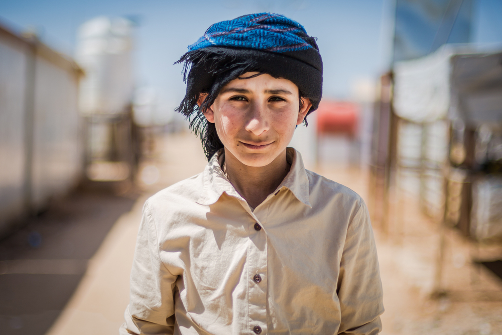 al samara, age 15, of al-sawra, syria. al samara, his sister, three brothers, mother and father fled syria nearly 4 years ago and have been living in zaatari ever since.