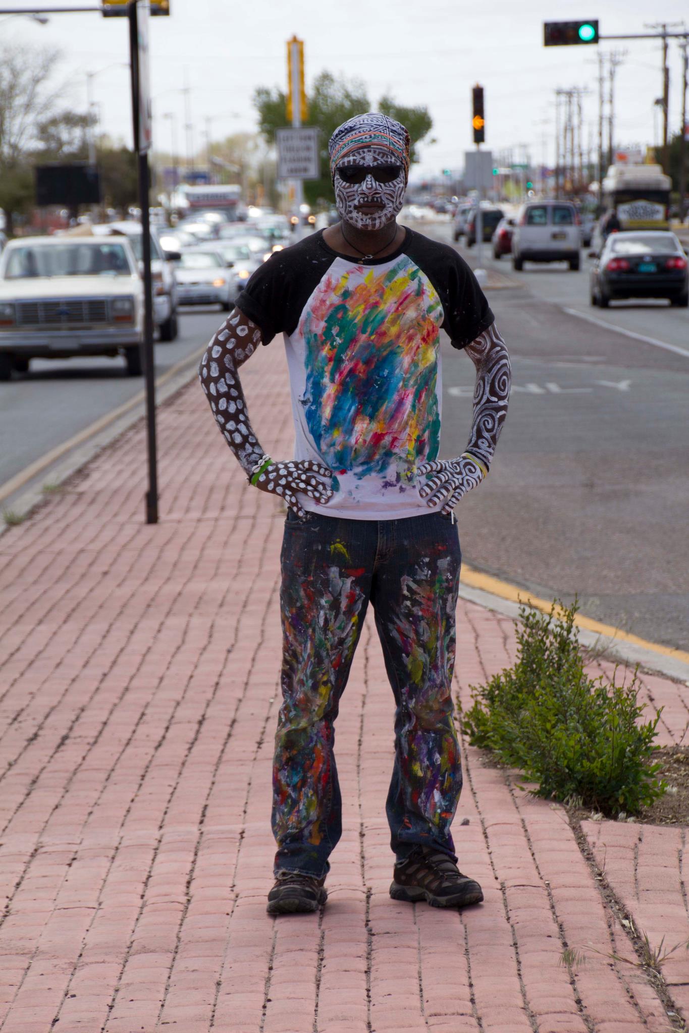 Issa Nyaphaga alias ‘Artoonist’ was imprisoned and persecuted in Cameroon for his political cartoons. Issa paints his body as a way to find resilience. Issa will build a costume out of recycled plastic bottles for his Friday performance. Issa Nyaphaga was selected by SFAI for his award winning project “Water for Social Peace”.