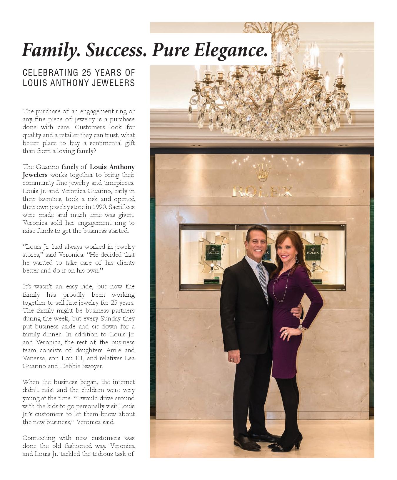 The Guarino family of Louis Anthony Jewelers works together to bring their community fine jewelry and timepieces. Louis Jr. and Veronica Guarino, early in their twenties, took a risk and opened their own jewelry store in 1990. Sacrifices were made and much time was given. Veronica sold her engagement ring to raise funds to get the business started.