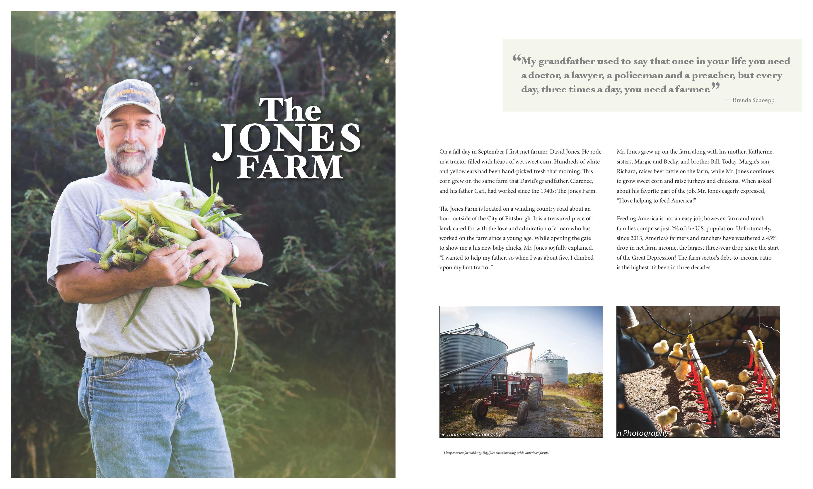 The Jones Farm is located on a winding country road about an hour outside of the City of Pittsburgh. It is a treasured piece of land, cared for with the love and admiration of a man who has worked on the farm since a young age. While opening the gate to show me a his new baby chicks, Mr. Jones joyfully explained,