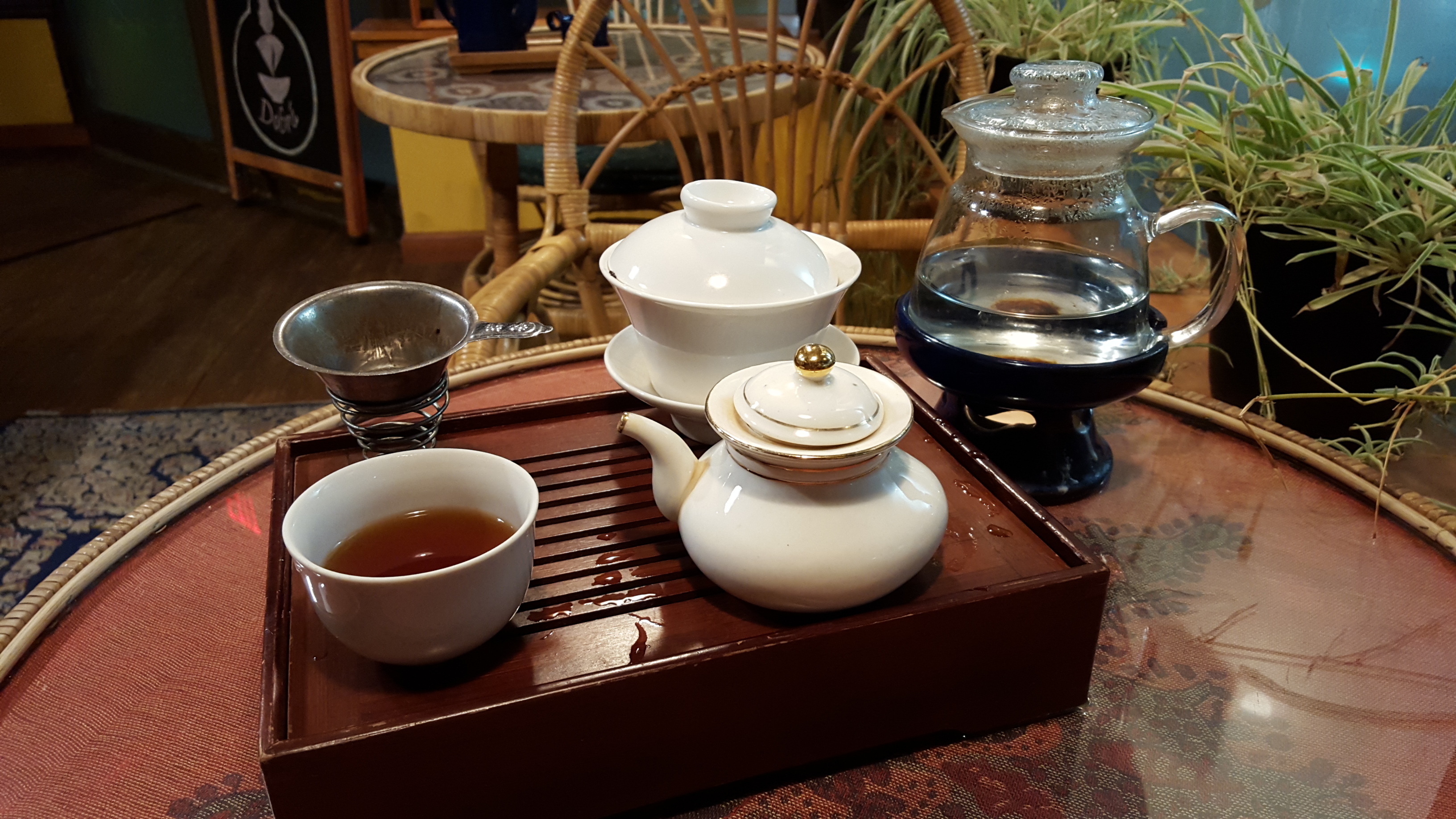 Original Thoughts: Chris over at Dobra told me this is his favorite tea. He said it goes on and on and on and on and on. Sounds like heaven to me. On this second occasion of drinking "Blood of the Ancients", I only had time for a few infusions, because I had to meet a friend for dinner, but I recall the first time I experienced this, I got a ton of infusions out of this. Fast forward into the future to February 25, 2016, I ended up having about 35 infusions of this stuff! I had about 96 ounces of tea on this evening and even around the 28th or 29th infusion, it was still going strong. This Pu-erh tea is no joke, its got the stamina of a 16 year old. There is also a very cerebral, logical process of pouring this tea, as its served on a bamboo tea tray reservoir box. First you take pitcher of hot water and pour it into the gaiwan of loose tea. Then you take the filter off the spring and place it over the small tea pot and carefully pour into that vessel. Finally, you take the filter off, place it back on the spring and pour the tea into the cup. If you are looking to impress a friend or show off your tea skills, this is the tea to get!