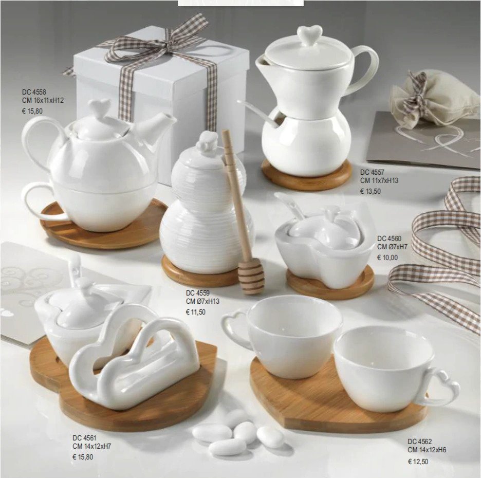 Italian Style Teapot and Teacup for One 3-Piece Stacked Heart shaped Cover White Porcelain Bamboo Tray