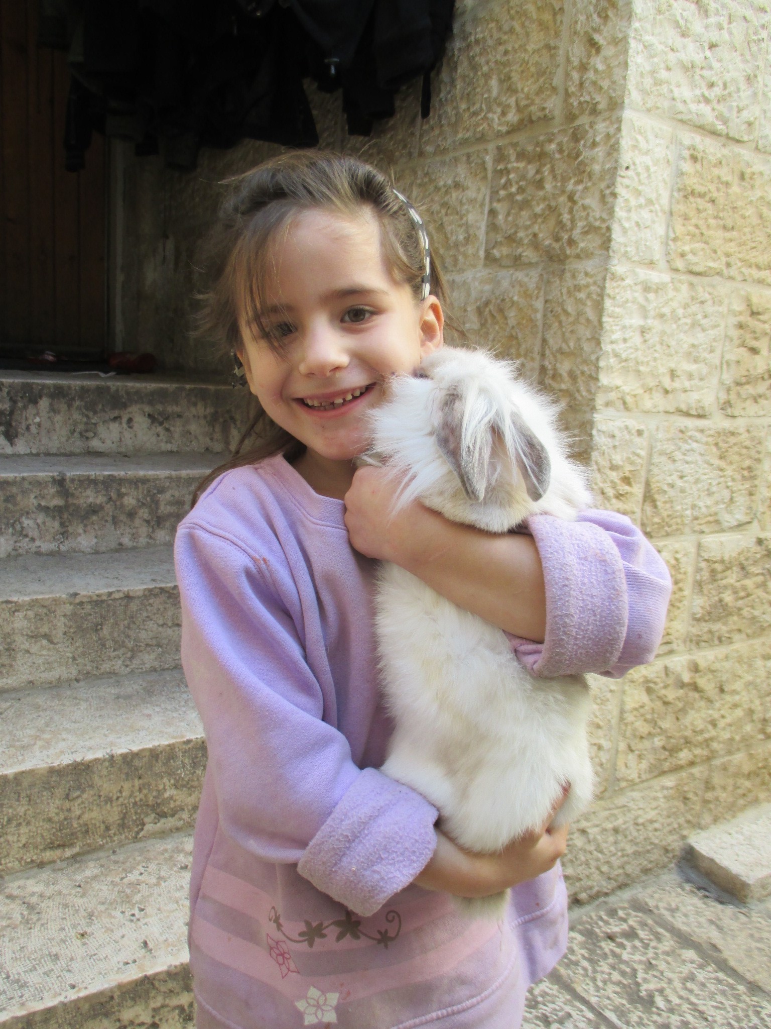 Then I saw that the neighbor’s door was closed. I walked over and knocked loudly, and the neighbor’s little girl answered the door. As soon as she opened the door the bunny happily ran up to her. She bent over and picked up her pet and smiling they both went into the warm apartment.